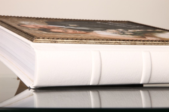 На белом альбоме (последнем) ещё в глаза попалось Ваше желание быстро отделаться от отделки передней сторонки, типа прилепил, а дальше красивше и нельзя уже. А теперь представьте валик миллиметра в два-три вокруг всей верхней фанерки из кожи другого цвета. Да ещё с какими-нибудь бантиками по углам, а рядом - по-венециански обвязанный рант.