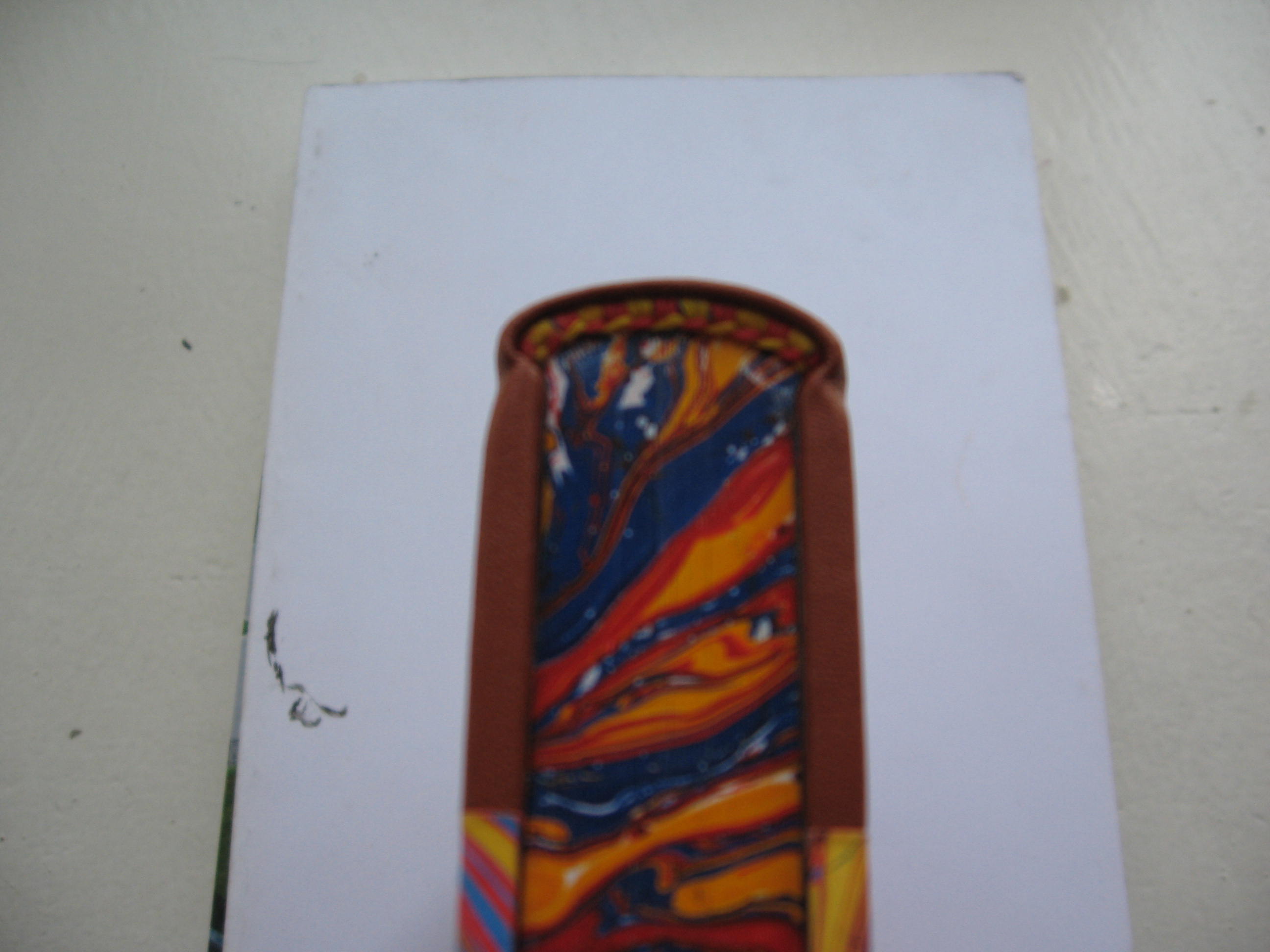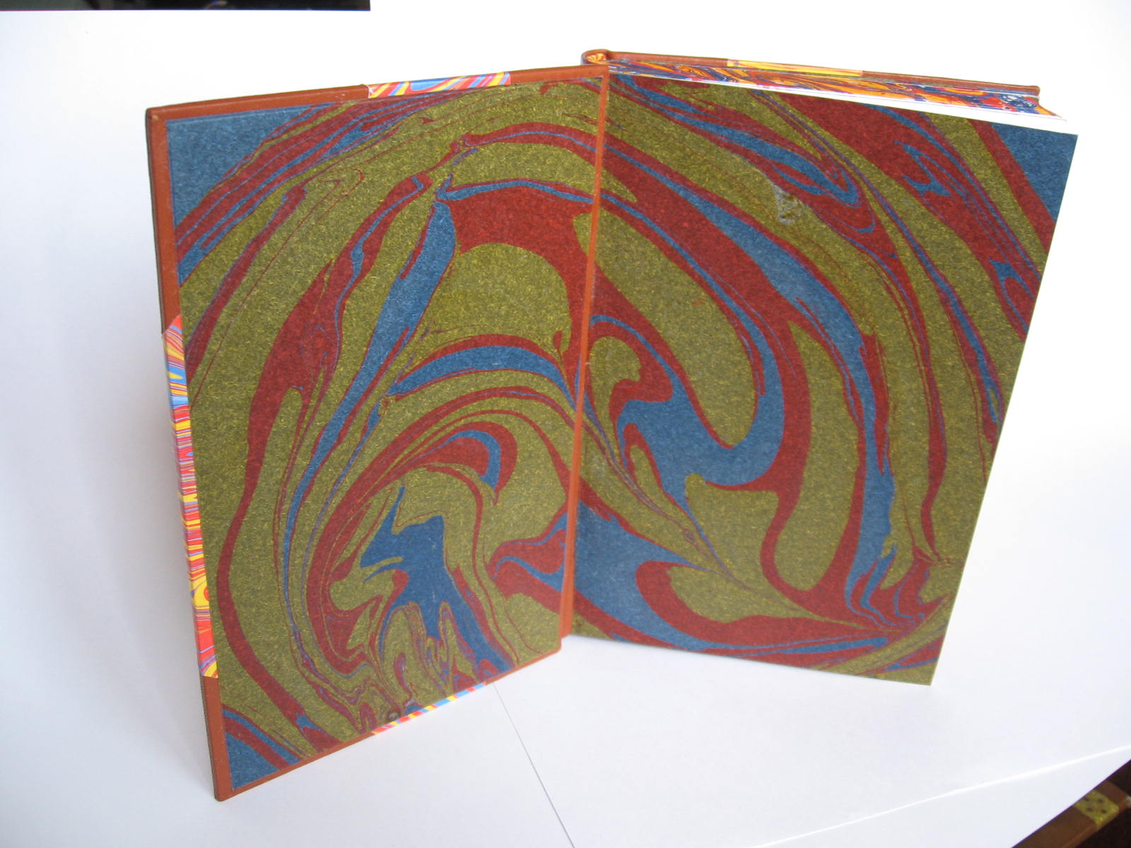 Обрезы блока, форзацную бумагу и бумагу для крышек окрашивал в ваннах. Ванны разных типоразмеров. В любой из ближайших к Вам типографий можно попытаться приобрести отработанные аллюминиевые печатные пластины толщиной 0,3 мм.(стандарт) и из них при помощи пасатиж изготовить ванночки только загибкой. Дешево, практично, не трудоёмко.