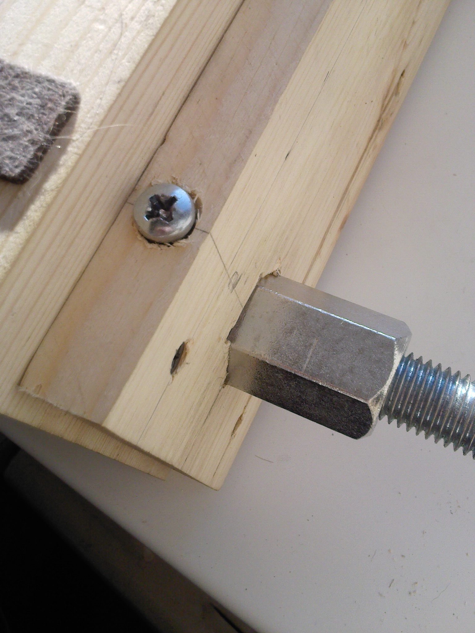 Спасибо за фото Шерфикса,но всё-таки не до конца я понял рычажковое устройство поднятия и опускания лезвия держателя.Фиксатором служит болт который вкручивается в гайку,в которой просверлено сквозное отверстие(сверлом диам.5) в одной из граней и метчиком нарезана резьба,а также прикреплена доска, в которой в свою очередь вырезаны два отверстия по профилю гаек, (это прекрасно видно на фото),она тоже удерживает гайку от прокручивания.Ну а со стороны ручек соответственно гайки вместе со шпильками просверлены насквозь, потому же принципу сначала сверлением, а затем нарезалась необходимая резьба.