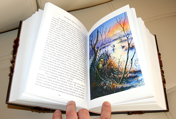 Пихну сюда же... Не хочу темы плодить. Закончил "Охотничий календарь" Сабанеева. 3 года сканов, распознавания, правки, вычиток, подбора иллюстраций и т.п. Поскольку книга изначально задумывалась в подарок другу-охотнику, ограничений никаких не было - книга собиралась из двух изданий (статьи по оружию, например, сильно изменялись и дополнялись за 10 лет), иллюстрации из "журнального" (дешевого) варианта заменялись на аналогичные, но из хороших изданий Брема и т.п., добавлены цветные иллюстрации современных художников... Получилось то, что получилось ))) Использование вот такой "фрезерованной" шкуры на сторонках, на мой взгляд, не слишком красиво, но зная любовь "конечного потребителя" к таким делам, где-то наступил себе на горло ))) В результате - полный восторг с "той" стороны! ))) Работал не зря ))