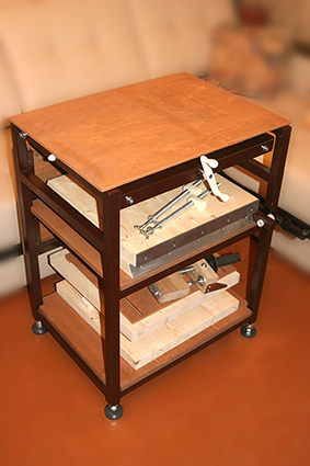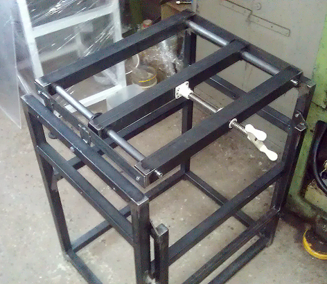 Конструкцию постоянно приходится корректировать, т.к. в процессе изготовления вылезают досадные мелочи. Так, например, раньше поднятый столик швейки мешал вращению тисков. Для устранения пришлось переварить крепеж столика. И т.п.