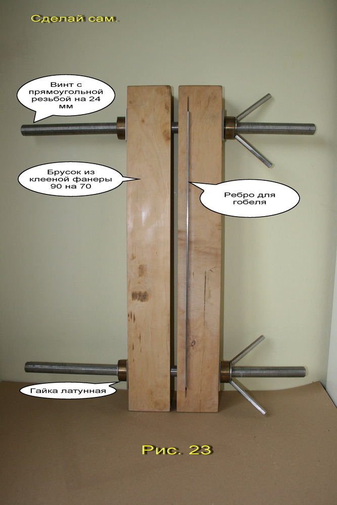 Рис. 22. Все пояснения на фотографии. Ребро для гобеля сделал на всякий случай. Ни одного разу не пользовался гобелем на этих тисках. Обрезку веду ручным ножом (см. Рис. 12.)