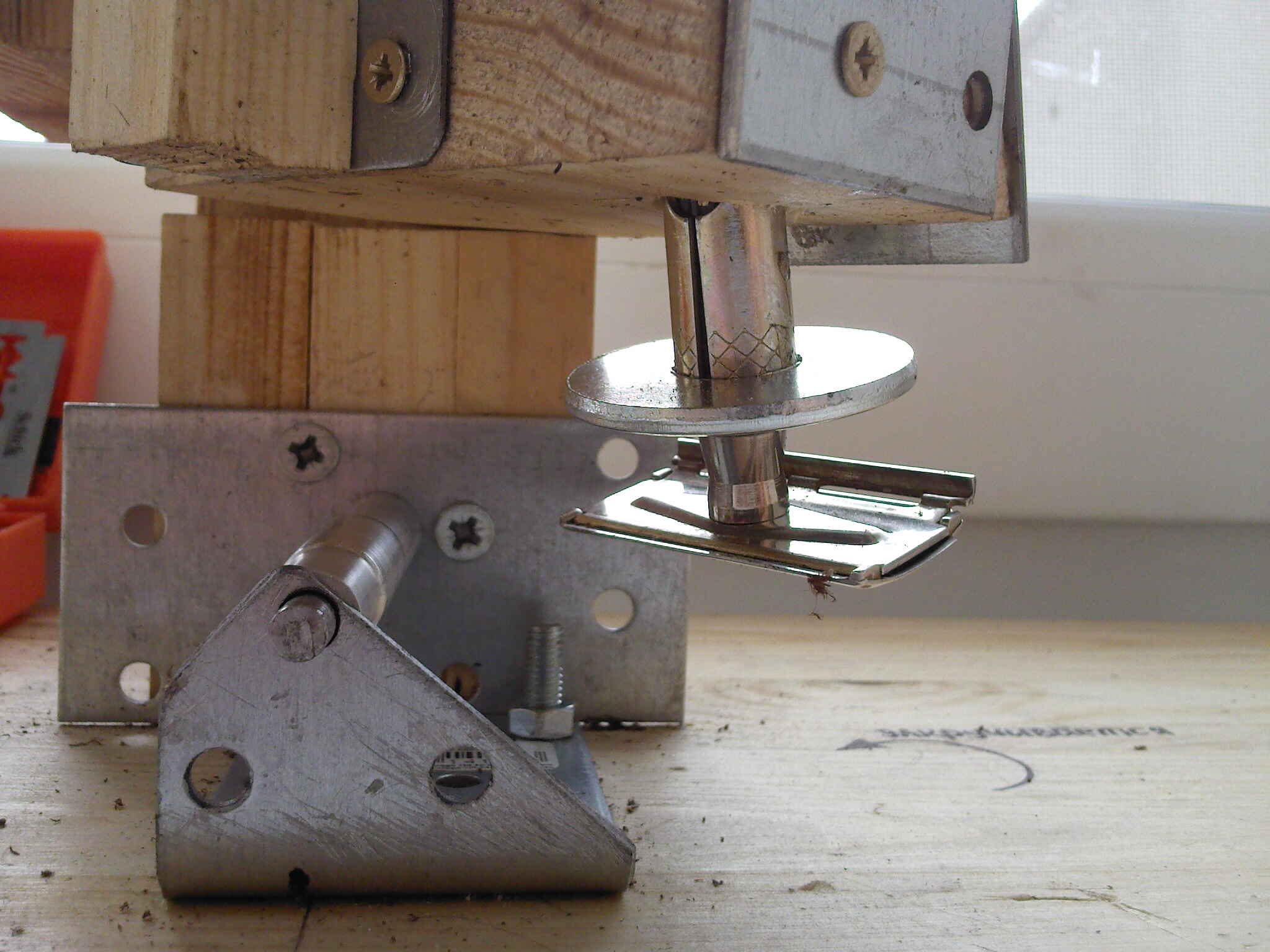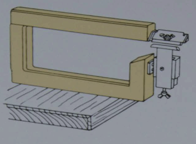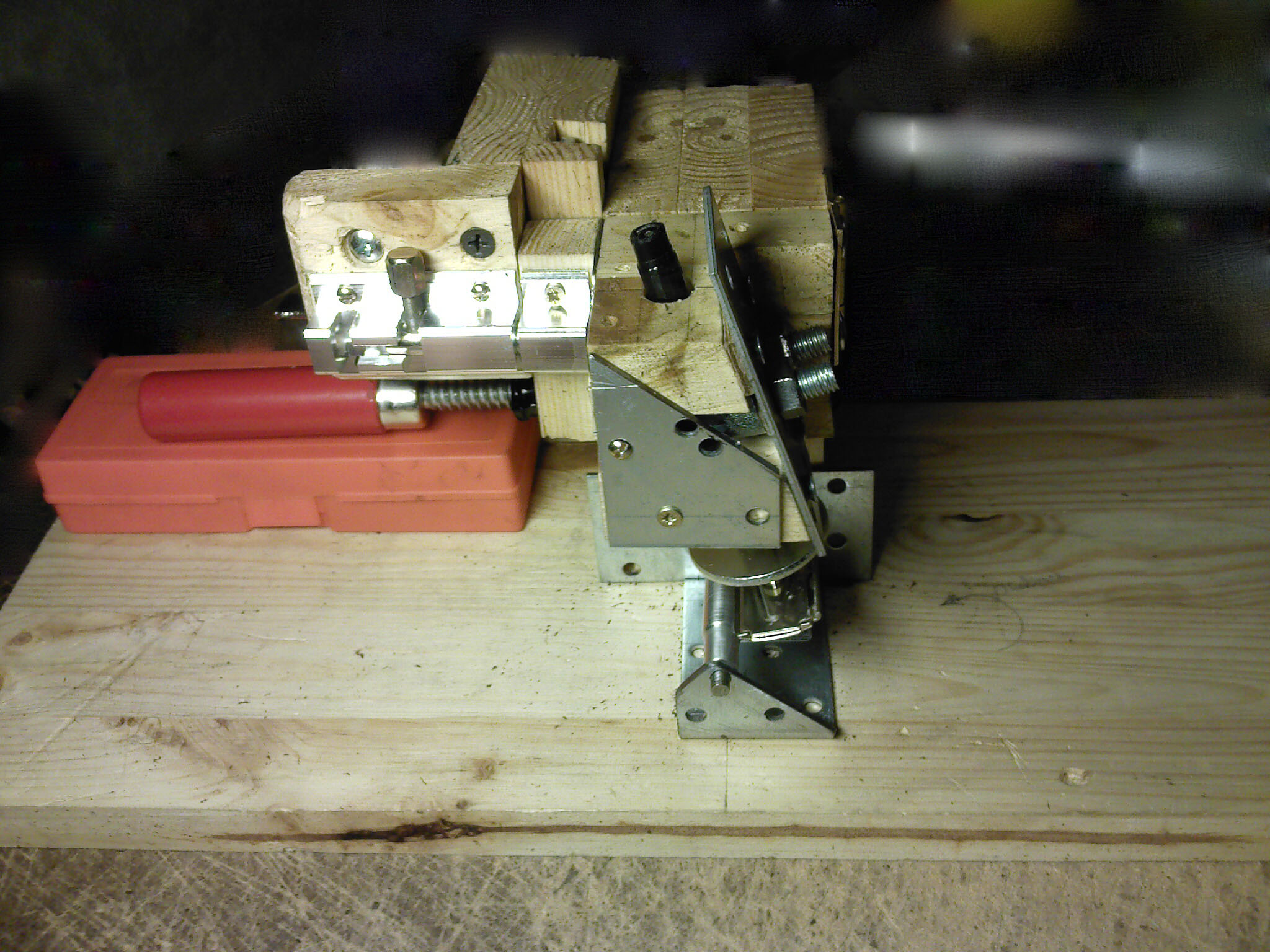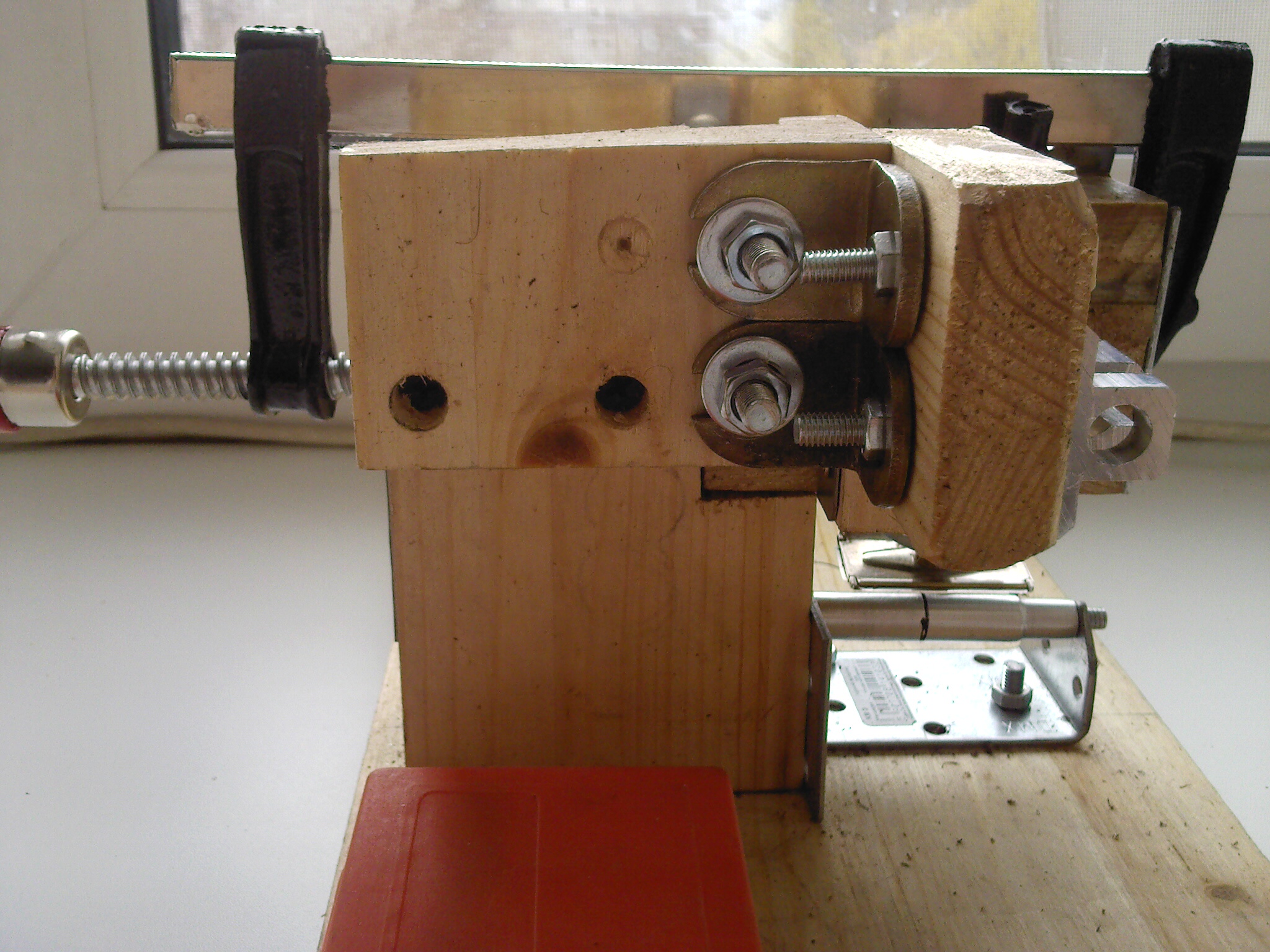 Основой для работы были заранее напиленный мебельный щит (1000*300*18мм) на детали 120*80 мм и основание, этот размер деталей (120*80) виден на "станине" шерфикса, а соединением деталей оказались не только шурупы и болты, но и клей столяр, небольшая струбцина добавляет необходимую жесткость при начале самого процесса шерфования.фото Механизма для обжима ручки станка,я поместил отдельно т. к. его не рассмотреть на основных видах шерфикса.