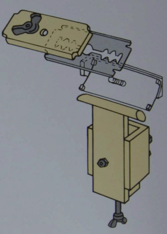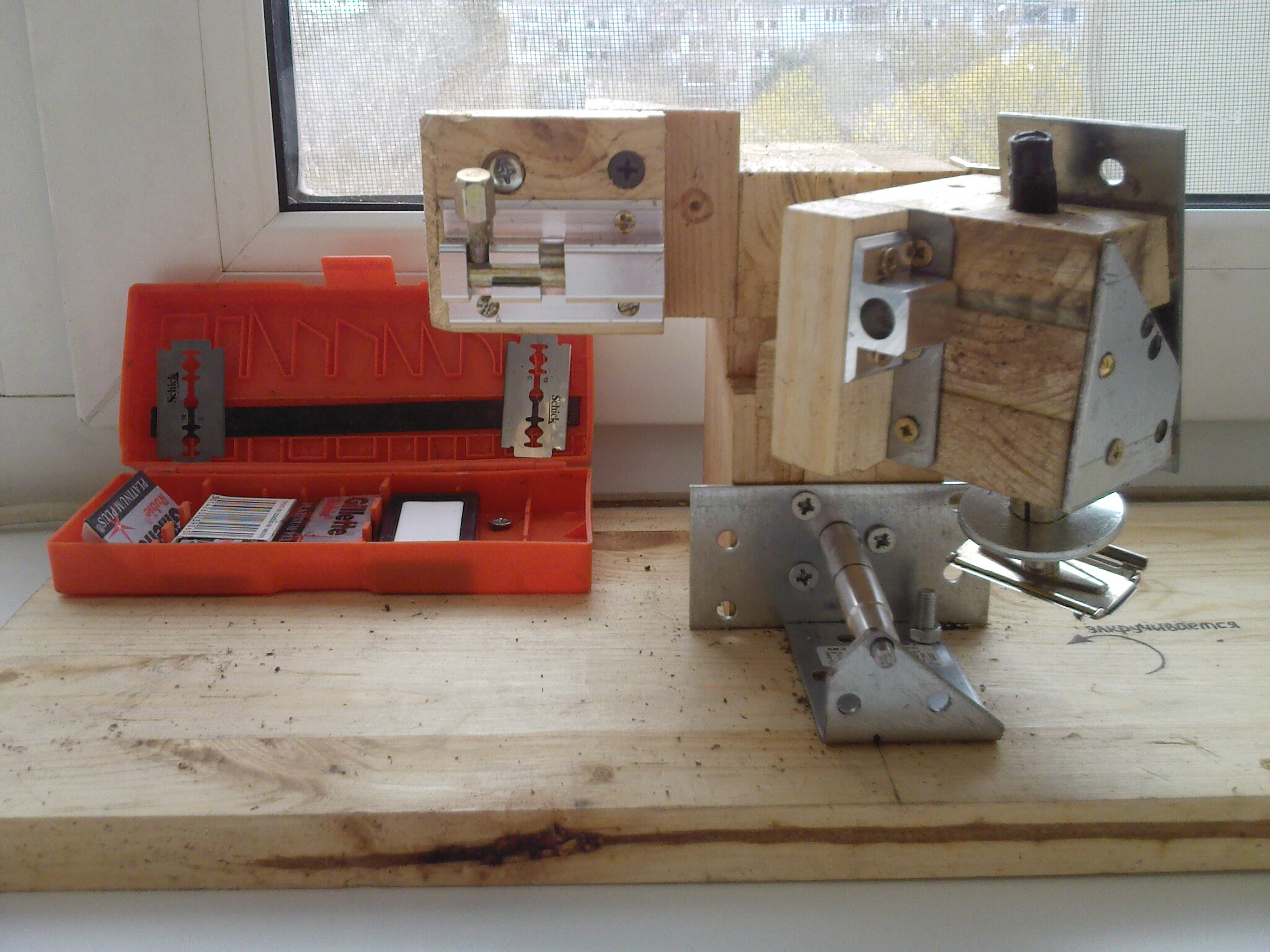Шерфикс сделан на основе бритвенного станка. Идея зародилась сразу после мучения с сапожным ножом и его постоянным подтачиванием и поиска оптимальной линии заточки, получалось шерфовать ножом уже неплохо но по времени все равно долго, а время как говориться деньги:), пока сделал только одну фотку, потом сделаю ещё более подробную фотосессию, в процессе создания были кой какие доработки связанные с жесткостью оборудования.На одну книгу, формата А4 хватает примерно одной стороны лезвия, а это исходя из простой арифметики стоит 3 рубля (НАБОР лезвий из 5 шт. в среднем стоит 30р),и никакой грязи только одна полосочка замши.