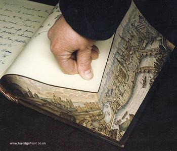 По инглиш это называется fore-edge painting но точного описания техники я так и не встретил, только реклама курсов